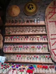 凤凰古城自本世纪以来越发有名,有名自然人多,人多就带动商业化开发,开发程度一重,就失去自然意境,或者说原汁原味了。虽称古城,但外观看得出刻意仿造出古朴风格,设施却很现代。 沱江下游下车,先看了沈从文老先生墓地,沈老先生家乡在凤凰,但他代表作《边城》发生地是在茶峒,不是凤凰,这点要注意。墓地有多处石碑,包括墓地字牌,生平简介,别人为其题的字,座右铭等。 真正一走才发现的确凤凰古城区很小,几乎几步一景一店,还有现场将热糖浆拉成姜糖,以及刀切木锤酥,尝了两家木锤酥后,选了一家口感黏腻柔软的购买,这里还遇到一种特有水果,叫火参果,一个要10元,沿路还有许多银饰、纱巾和苗服售卖处。 人说到凤凰不看九景后