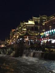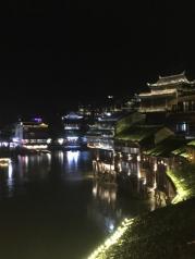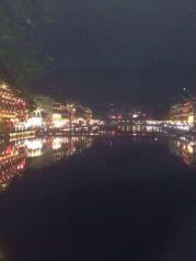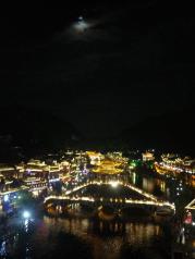 看到的第一眼,美呆了,看了很多人的评论都说去凤凰古城玩门票太贵,其实我想说能看到这么美的夜景也算是很值了,至少去里面没有乱收费了,也不是强行买卖,我去了两天花了2700元(是因为一起去了4个大人,2个学生,一个小朋友,学生买车票都是全票,本人感觉不划算)门票还不要钱呢,因为我属于免费区范围内的城市,对于第一次去的我有点傻,竟然住在了离凤凰城N远的地方,千万不要信网上说的什么住城内超贵之类的说法,不过第二天大早我就退了房住在了古城内了,价位好像是280,两个床,晚上还能买些吃的回来坐在阳台上聊天,看美景,最有名的就是酒吧了,整个城内全是酒吧,不过过了23.00就开始安静了,好安逸,下次我一定会带