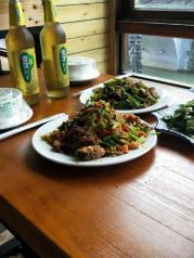 凤凰古城还不不错,古城很美,很喜欢这里,也喜欢这里的美食,超级棒的 在一家叫湘西往事二楼美食部落,可能是因为在二楼,所以才叫二楼美食部落,就在虹桥哪里,在虹桥上面就可以看到门牌照,很显眼,确实做得还不错,菜很好吃,后来才知道里面还可以喝咖啡,喝冷饮,真不错,我觉得玩累还可以到这里点上一杯冷饮,或者喝点小酒,聊聊天,多么惬意啊