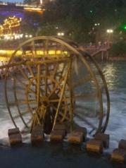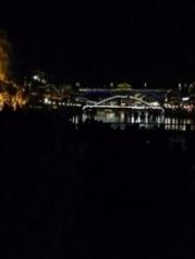 横跨在沱江的小桥。白天的时候水位较高,没了石头没办法走,晚上看到水位低下去些,石头露出来一点点,有些人就开始蠢蠢欲动想要走了。以我的胆量是根本不敢会面的,只敢顺着人群走。石头上水润润的,真怕脚底打滑就掉下去,走得十分专心致志。也有不少小情侣前后牵手走过,想必走完是很暖心的吧~
