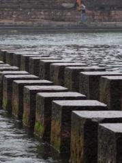 幸亏我早几年就去了这里,那时没有熙熙攘攘的游客,我可以非常清静地漫步于此,无师自通地发现这是绝好的拍照点。倒霉的是我来这里来得太早,印象中完全不记得导游给我们介绍过这个,当时还看着水中的一块块岩石,傻傻地想是不是因为年代太久、水流太急,把桥梁的水平部分全都冲掉了,只剩下这坚硬的石头还留在原处。