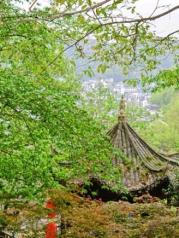 从虹桥出来步行2分钟就到了南华山神凤文化景区的入口处,在虹桥中路上,很方便的,这一条街有很多的特色饭店和旅馆。南华山包含在凤凰古城通票148元内,查票很严的,都是扫描身份证或者门票上的二维码。虽然凤凰古城现在不收门票了,但是各景点还是需要买门票的,而且门票不单卖,南华山也包括在内,不买通票是进不去的。这是中国第一个凤凰文化全体验景区,景区内的亭台殿廊阁等都是围绕着凤凰文化元素来打造。包含凤竹林海、有凤来仪、凤缘亭、引凤桥等主题景点。其实个人觉得主要是登山,山不高,在茂林修竹中沿游道拾级而上,自然环境特别好,一层层上去可以看到凤凰古城的全貌,我们走了一半程路就下来了,登到最上面还得原路返回,特别