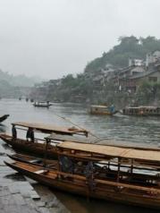 凤凰古城依山傍水而建,水指的就是沱江。沱江很长,最繁华的地方在虹桥风雨楼那一片,晚上这里灯火通明,酒吧KTV会喧嚣一夜。早上沱江上会有薄雾笼罩,太阳出来后沱江会很清澈,下雨之后,沱江会水流湍急,在江上坐竹筏游船的会更刺激。