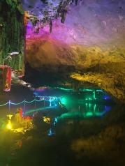 隐水洞是个好玩的地方,洞长5000米,隐水悠长,景色奇异,大自然鬼斧神工,配以彩色灯光,璀璨瑰丽,让人流连忘返。票价包含两次遊船,一次小火车,性价比特高,超值享受。已经推荐给朋友啦
