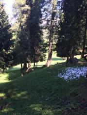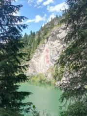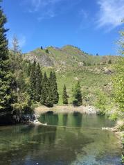 5月去天山天池游玩,图片是西小天池,西小天池在天池脚下两公里处的路旁,水面状如满月,池水清冽幽深。天山塔松环抱四周,池中有松树的倒影。