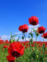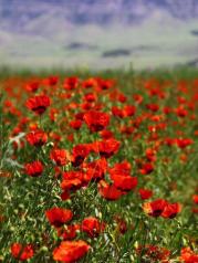 天山天池的红花每年5月份底开放,鲜红欲滴的天山红花开得火红浪漫!天山红花生长在天山缓坡草甸中的野生植物,是初夏一大靓丽景观,盛花季节,天山红花花开红红火火,形成红花的海洋。