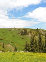 喀拉峻草原是伊犁河谷中的一颗明珠,雪山、草原、花海、湖泊共同构成了一幅无与伦比的美丽画卷,特别是起伏的丘陵草原,醉人的大地曲线充满了灵动。