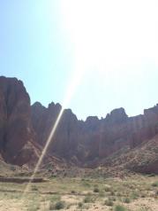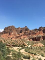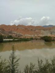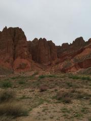 阿什贡峡这里的丹霞地貌以形象为主,据说天气适宜的情况下,色彩也是很好的。有土山也有石山规模都很大,气势也不错,但一早一晚都没有霞光,很遗憾。