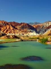 阿什贡峡这个地方在淡季很冷清,主要因为冷,实在没人来,不过丹霞地貌,红石林,很漂亮,虽比不过丹霞,张掖,但是山中一片七彩地貌还是特别惊艳。