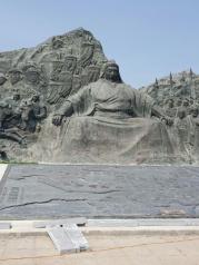 来到这片广袤神奇的天边乌拉盖草原,除了欣赏原生态的丘陵草原之美,一定要沿着"苍狼之路”(长达800米,伫立着26根石人柱,石人柱高2-4米不等,上面雕刻着成吉思汗之上25代祖先中重要人物的艺术形象)去登上可汗山,去看看蒙元帝王群。在可汗山的山顶上矗立着蒙古民族最具代表性的伟人元太祖成吉思汗和元世祖忽必烈的巨型肖像,其中,成吉思汗肖像的高度为50米,直径为100米,忽必烈头像高度为30米,直径为80米。在成吉思汗和忽必烈肖像的右下前方,是一组和山体融为一体的圆雕,高度4至9米不等,展示的是“蒙元”时期和“北元”时期的16位帝王的形象。在山下由800尊全身塑像构成的“蒙元兵阵”;兵阵分“蒙古武士群