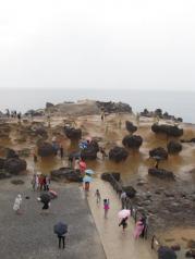 来野柳地质公园这里游玩的时候请务必带上雨伞或帽子和水。岩石构造真是太神奇了。有些形状很容易辨认,而有些形状,你必须仔细观察才能看到。他们有一张地图,但不符合比例。请穿舒适的鞋子来,因为平整的路段只在一边。你也可以登上一个高架平台去看其他的岩石。