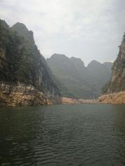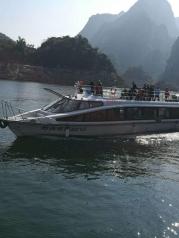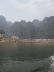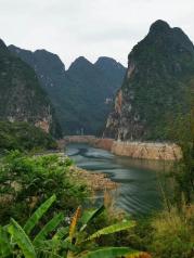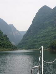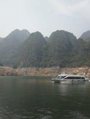 万峰湖是建坝形成的人工湖,面积可不小,70多个西湖的大小在加上万峰林余脉的加分,让它也有了一定的欣赏价值。 这个不要门票的所在,并没有太多的游人,可能是旅行社没有什么油水,为了进一步避开人潮,选择了更远的码头坐船,结果这次真的人少,为了等人拼船可算苦等,最后好在来了一家爽快的温州游客,我俩才算用最小的成本坐上快艇