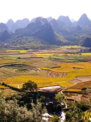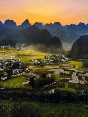 对于桂林的地貌,真的是太惊讶了,尤其是万峰林,从高处往下看,由将近2万座组成的山峰拔地而起,组成了一幅壮观美丽的景象。村子在山峰之间,感觉是如此的融洽。