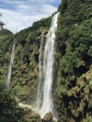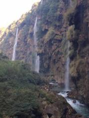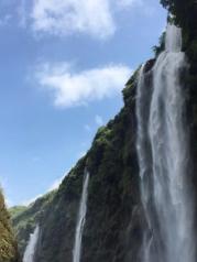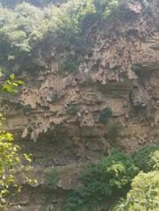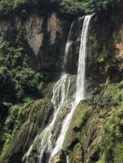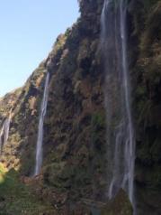 一路往下走,没觉得马岭河大峡谷有多大的震撼景色,直到看到了它,奇特的岩层地理,挂在峡谷一壁的三条瀑布时,这一路走来的风光原来无限好