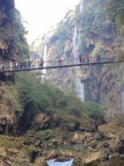 马岭河大峡谷的主要景点是瀑布群,要走下去,才看得到。瀑布还是可以看的,漂流我们没有去,走下来差不多两个小时,不过我们没坐观光电梯下去。爬上爬下的还是比较累。