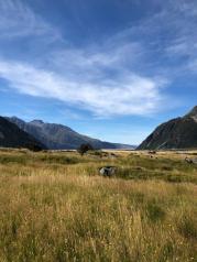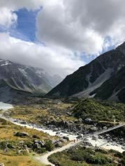 库克山国家公园位于南岛中部,风景极佳,今年去时正赶上下雨,云雾中开到山下,天逐渐放晴,库克山真容逐渐显露出来,清新的空气,鲜绿的青草,云雾缭绕在半山腰,覆盖着白雪的山峰,沿着塔斯曼步道,看到了壮观的塔斯曼冰川!