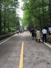 鸡公山国家级自然保护区的门票是78元。验票进了大门后,直接登上观光大巴车(只有我一位游客)。我记得很清楚,大巴车是10点准时发车的, 盘山 公路上走了快半个小时到达终点的“宝剑山口”后,司机告诉我:每半小时发车一班,不要晚过下午5点啊。
