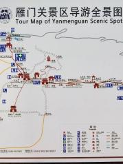 雁门关一直是中原抵御北方游牧民族南下的前线要塞,中国世界文化遗产长城的重要部分。它的特点是依据天然的地形,建立在崇山峻岭之中,有一夫当关的气势。 我们随旅行队伍从雁门关的塞外部分进入雁门关。到雁门关景区后,老远就看到了的是高高站立在雁门山上的杨六郎杨延昭的石雕像、景区‘广汉’木寨门外左侧毛泽东手书‘雁门关’纪念碑。景区明月楼外对面车道左侧有一大型石壁是历代名人壁。右侧是两排大型雕塑群杨家将,杨业领衔的杨家将和佘太君率领的杨门女将。依次参观明月楼-雁门寨-边贸一条街-豹突泉-长城雁门关段-地利門(宁边楼)-关署-天险门-镇边祠-驿站-最后登长城城墙。登雁门城楼,看关隘天险,缅怀古人。