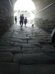 大名鼎鼎的雁门关,来到附近一定要去看看这“中华第一关”(期间大家还讨论,山海关不是叫天下第一关么?到底谁第一。后来才意识到山海关是万里长城的起点,这个第一。而雁门关是地位啊,最重要的关隘) 我们从前腰铺这边进来,车停在停车场之后,摆渡车还要坐大概七八分钟才到景区门口。经过阜戈民俗村,古道,雁池等小景点,就到了雁门关。实话说古道相当震撼,历史的年代感扑面而来,古道上坡就是雁门关,好几座关口,虽然都是后来休的,还是很有第一的雄关风! 再朝里走,可以走到后腰铺的景点门口。这里看到景区规划问题,两个景区都可以进,但是都得从哪儿进从哪儿原路回。 不过后来我们出来景区去朔州,走雁门关18弯,险峻的山路18
