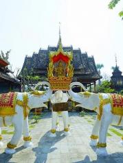 傣族园里面有西双版纳最古老的,1400多年历史的曼松满古佛寺,和非常有特色的勐罕曼听佛塔寺塔包菩提树。千年曼春满古佛寺,是傣族人的信仰,南传上座部佛教文化的传承地之一,虔诚的傣家人全民信佛,每当特定的日子,傣家人都会早早的到寺庙里祈福。