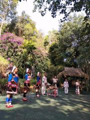基诺山寨是较为原生态的景点。入园前基诺族的青年男女们舞动着作为欢迎,这种仪式感我挺喜欢的,可能是因为自己学舞蹈的原因,甚至想跟着一起跳起来。园区有基诺族导游,听她说道,基诺族有自己的语言却没有自己的汉字,因此,寨子中有一些老人和游客是无法交流的。山寨中保留了大部分他们原本的生活样貌