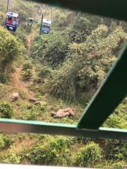 野象谷上山坐索道35分钟,要跨过跟多座山峰,坐在索道上,不太敢动,感觉设备车厢都挺老了下山走了很久很久,入园一开始也就是看看动物。再看看表演,再看看大象升旗,然后和大象合影是收费的,收费倒也不贵,几十块钱