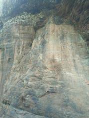 齐云山不高,但云雾袅绕的。步行上山,看看景色,锻炼身体那必是极好的,就果断走山道了。先是爬了一路的石阶,到了半山腰的时候就可以看到刻字的石壁,特别气势恢宏。路过寿字的时候记得过去走一走,不是有句话说的好吗,寿下走一走活到九十九。