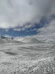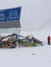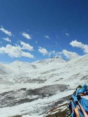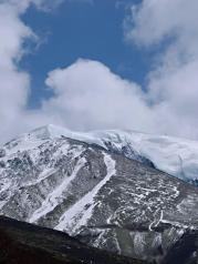 米拉山是川藏公路的最高点。从这五千多米的云端俯瞰,有种高处不胜寒的味道。凛冽的寒风吹在脸上,湿凉凉的叫人不禁想打寒战。这里的空气似乎更加稀薄。