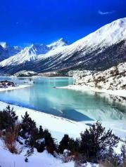 然乌湖的美可以用绝美来形容,尤其是深秋和初冬交错之际。狭长的湖向西蜿蜒十余公里逐渐收缩成一道河谷,随季节的不同,河水也呈现出或碧蓝或青绿等数种颜色。河道中许多岩石和小岛点缀其间,湖面上春季树影婆娑秋冬薄雾弥漫,四