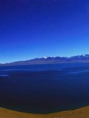 扎日南木错,湖床开阔,宁静辽远。如果不是看到对岸的远山,一定会误认为是大海,而它却比大海温柔、细腻、充满柔情。风和日丽,在高原太阳光照射下的湖面波光粼粼,泛着耀眼的极地蓝光,仿佛湖底下深藏蓝宝石,穿透湖面,蓝得分外妖娆,纯净透彻。环顾四周目所能及之处,除了我们,不见任何人烟。在博大浩瀚的风景里,有的就是眼前这面幽深莫测、蓝得忧郁的湖水,这样的旷世奇景正是我多年来寻找的远方。