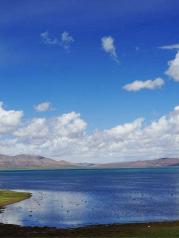 拉昂错号称“鬼湖”,据说是因为这里是咸水湖的缘故,湖里没有鱼虾等生命存在,但湖水却是非常非常的蓝,站在旁边的高地上真有想投入其中的冲动。