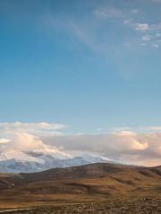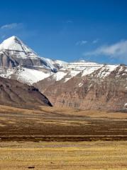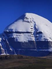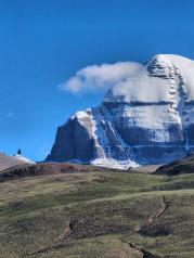 苍茫高原中,冈仁波齐如同王座,至高无上地矗立在碧空如洗的蓝天下,威严耸立。这座金字塔般的山峰,是信众通向幸福之门的阶梯。峰顶经常是白云缭绕,当地人认为如果能看到峰顶是件很有福气的事情。近距离仰望着传说中的神山,它是那么近,那么美,那么神圣!
