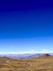 嘉措拉山口——也称定日界,海拔5248米。海拔4000米以上植被稀少,天空细腻柔软,山地粗砺坚硬。视野的上半部是纯净的瓦蓝色,下半部是单调的赭红和灰黄。除了灰色的山路,几乎没有生命痕迹。