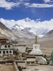 绒布寺是不想过夜住帐篷同时又可方便观赏珠峰日出的唯一之选,最后一个公安武警检查站也就设在这里,当然少不了要检查身份证和限速条。在绒布寺拍摄的珠峰,向南眺望,珠峰像一座巨大的金字塔,巍然屹立在群峰之间,虽然照片里峰顶还有些云雾缭绕,但已经是比较好得了。