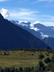 吉隆沟这里雪岭连绵、冰峰高耸,雪线下危崖峭立、葱郁满坡,平坝上绿草如织、繁花似锦,沟谷中幽涧飞瀑、气势恢弘。