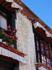 红宫的红色是特有的藏药的颜色,可以防虫,红色的部分不是红色砖头,一种植物,上面在图上藏药。宫建于1690年,当时,清康熙帝还特意从内地派了100余名汉、满、 蒙工匠进藏,参与扩建布达拉宫这一浩大的工程。