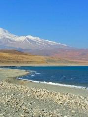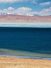 鬼湖拉昂错紧紧的依靠在圣湖玛旁雍错的旁边,在她的西面,勾画出一个美丽的月牙状同样蔚蓝的湖泊,而玛旁的形状宛如太阳,她们本来的形状,就展示了一种和谐,一种金刚不二美的极至境界。两湖之间的地带是进出普兰县的必经之路。据说鬼湖是无风三尺浪。其实这里是景色非常美丽,湖边暗红色的小山,颜色迷离。行至湖边,耳边阵阵波浪声。卵石滩象一条白亮亮的银带,镶在湖边。湖里还有一个小岛,是暗红色。站在拉昂错湖畔,一股奇怪的感觉在胸中升起;偌大的湖区见不到一人一畜,空旷得象是站在了宇宙边缘。圣鬼两湖不但相隔不远而且两湖有水路相通。也许因为造化,圣湖和鬼湖的水质完全不同:圣湖的水清冽甘爽,鬼湖的水苦涩难咽。这两极的对立让