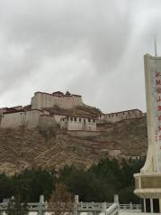 在快要进入拉萨之前,要经过甘丹寺。甘丹寺位于拉萨达孜县的一座3800米高山山顶上。从318国道开到山顶一直在走很陡的盘山路,貌似直接上升了近千米。甘丹寺是一个寺庙群,全部建在山顶及悬崖边上,里面很大,就算不懂宗教寺庙,也十分推荐去看看这建筑。