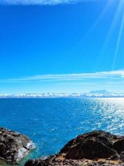 色林措是我们阿里之行最为震惊的一个景点,当我们驾驶着越野车离开公路经过牧民的帐篷翻越一个小山头之后当车停在山丘山丘顶的一瞬间,我们惊呆了无边无尽的水天一色的呈现在眼前,好像天堂,好像仙境,在此时,语言是多么苍白无力,摄影是多么平淡乏味。