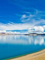 当惹雍措 , 只看一眼 ,便深深印入脑海。 相逢当惹雍措,忽然一片耀眼的蓝出现面前 ,天蓝 ,水更蓝。当惹雍措,第一眼给人的感觉 :惊艳! 因为地处阿里腹地 , 因为人迹罕至 ,因为不见经传 ,因为意外之外的美丽相遇 ,所以它的美,让你惊艳 。当惹雍措,它艳压群错 , 以至于相逢后 ,便再也不忘 。一错再错之后 ,茫茫无人区 ,苍凉雪山环抱中 ,清澈碧蓝的当惹雍措,竟是最爱。