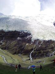 到米堆冰川时,看到了米堆冰川一角,被诱惑,买了门票就往里走,7公里,全土路,比较难走。到达停车场后,步行上山,这是第一次近距离看冰川,心里还是很激动的,加上冰川前小山丘上的树叶的黄绿相间的色彩,让冰川看起来格外漂亮。