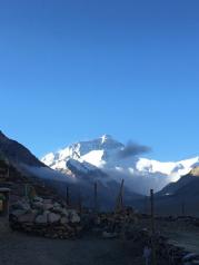 绒布寺是世界上海拔最高的寺庙(海拔5200),西藏格鲁派藏传佛教,受于自然条件的恶劣,寺庙非常小,只有一个喇嘛看护。寺庙正前方就是珠穆朗玛峰,绝美的景色
