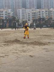 第一次来海陵岛大角湾就喜欢上了,环境很好干净,水也很清,最值得赞的是冲浪的地方有好多救生员,救生员都很尽责任,沙滩上还有一家大细都合适水上乐园和各种机动游戏,是值得一去的好地方。