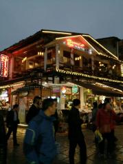 阳朔西街的地理位置很优越,距离阳朔汽车站只有500米左右,但有个缺点就是商业气氛很重。这里的特色菜啤酒鱼很值得一尝,鱼的口感很好,做法类似于烤鱼,味道很特别。只是没有丽江的浪漫,我们团队几个去的,总的来说还不错。