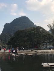 遇龙河漂亮大概一个半小时,筏工很爱说话,因为不是黄金周,坐船的人少了很多,所以他也不是很着急赶回去接下一波客人,一路几个筏工笑笑闹闹,跟我们拍水聊天,其乐融融,景色秀丽,旱季河水不是很大,但9个坡仍然让我跟孩子惊叫了几次,开心的一程,来阳朔必玩之旅。