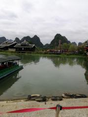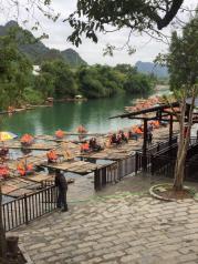 遇龙河算是阳朔最舒心的景点了,只因这里还保留着人工竹筏,从上游乘坐竹筏漂流到工农桥大约一个半小时,中途河面有些许落差,乘坐竹筏安全,且沿途风景优美,无人造景观。价格适中。可以悠闲安静的欣赏沿途风景,遇到会唱歌的船老大还会给客人唱几首山歌,别有一番风味。