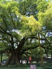 阳朔大榕树景区里的大榕树亭亭如盖,巨伞般伫立在天地间,很有历史沧桑感,榕树高17米,径围7米,覆盖面积约一千平方米。记得小时候看电影《刘三姐》,好像刘三姐最后和阿牛哥就是在这里情定终身的。