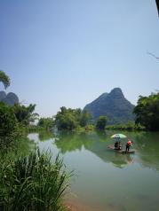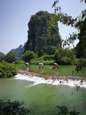 遇龙河漂流绝对是阳朔最好的游玩项目,在这里伐工撑着真正的竹筏带你领略遇龙河两岸美丽的田园风光,中间有几个小陡坡,冲坡而下,水花飞溅,我们都玩得很开心,下次有机会还会再来。