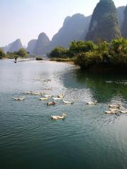 遇龙河景色不错,青山绿水,沁人心脾,这里是我们一周桂林行的点睛之笔。如果有人问我世界最美景色top 10,我现在一定会把遇龙河放进去。坐上竹筏那一刻就觉得无比幸福,非常值得一游。