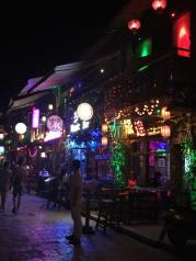 阳朔西街还不错,大概等于十个北京王府井小吃街的噪杂。个别夜店还夹杂了大阪招牌的设计风和芭提雅的站台style。身穿白羽蕾丝小礼服的bar girl站在橱窗里,一脸漠然的扭动着,橱窗外一群游客举着手机围观。